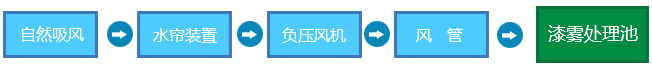 采用负压式抽风原理,漆雾经过水帘抽入风管,进入漆雾处理池。